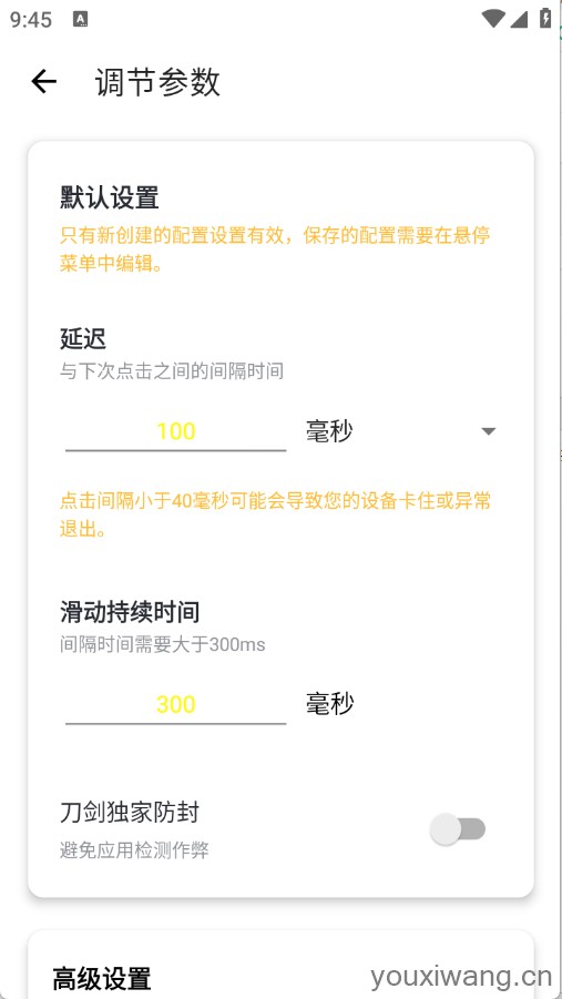 1、还可以自由设置相关的点击频率,间隔时间,以及相关的滑动手势等。