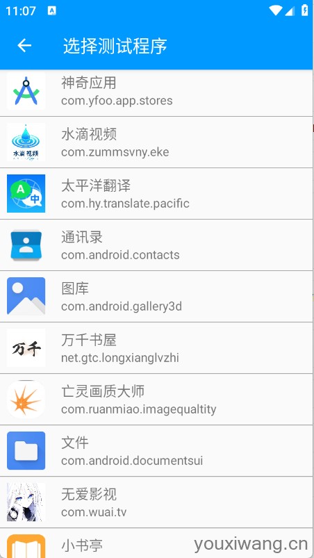 3、选择要测试的应用程序。