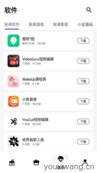 3、软件资源分享:提供丰富的修图、影视、小说漫画等应用。