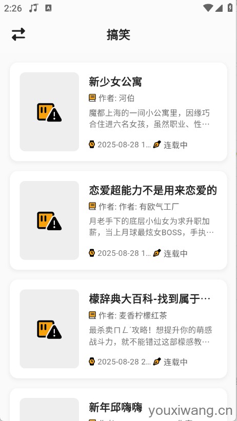 轻漫岛,丰富的漫画资源,不管是悬疑、热血以及动作等类型都有,所有的漫画都是免费阅读的,可以对阅读页面进行各种设置,漫画资源更新速度快,喜欢看漫画的用户一定不要错过了,海量漫画任你阅读。