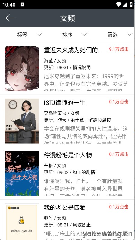 3、分类页面将小说进行了详细的归类。