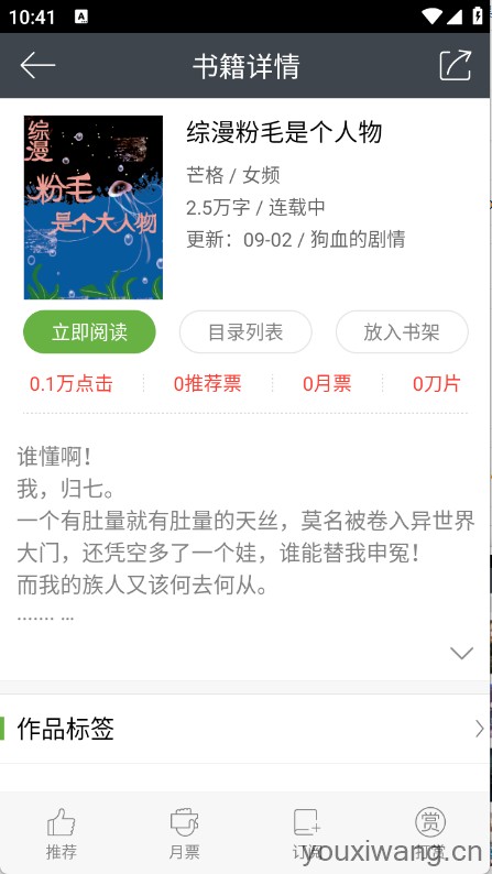 6、找到并点击想看的小说进入详情页,点击“立即阅读”。
