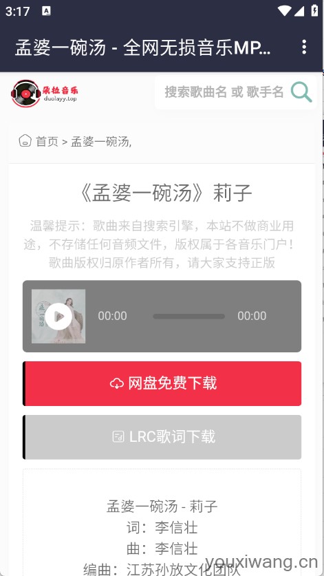 4、找到并点开想听的歌曲可以播放也可以进行下载。