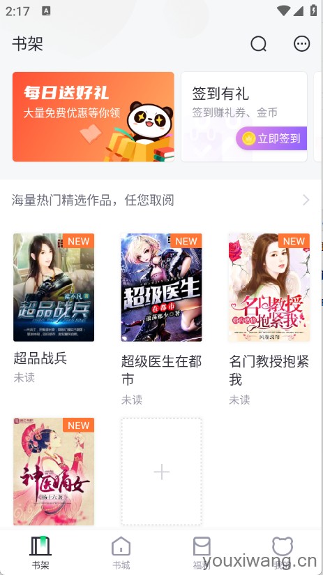 熊猫看书,是专门为爱看书的用户打造的追书神器,言情、都市以及武侠等类型都有,所有的小说都是免费阅读的,可以将小说加入到书架,随时都可以打开进行阅读,另外还会根据用户的喜好智能精准推荐想看的小说,随时都可以开启看书模式。