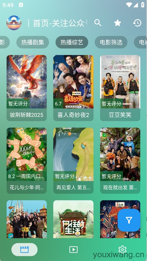 3、首页顶部栏中可以看到很多的影视剧集类型。