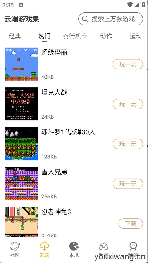 1、用户首先在3g游戏网下载怀旧游戏馆app。