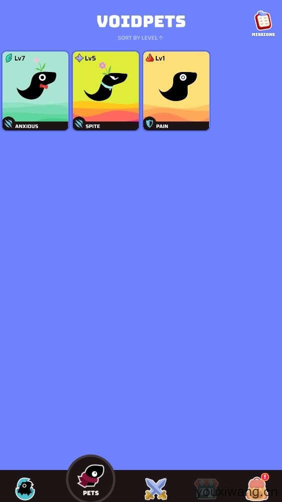 5、点击下方的pets按钮可以培养你的宠物,你可以提升宠物的等级或者装备物品提升战斗力。