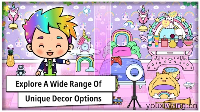 欢迎来到蒂奇小镇,这是一款非常休闲有趣的家居装饰游戏。在这里可以玩家尽情的释放自己的想象力,用天马行空的创意去自由的设计一片属于自己的专属梦幻天地!晶莹剔透的冰雪城堡、Q萌可爱的泰迪熊房间、充满童话色彩的独角兽卧室等等,各种风格的房间都可以去选择设计,丰富多样的家具、装饰品可以任由你来搭配,打造出你梦寐以求的完美房间!除此之外,我们还能自由的创建角色,用各式各样的精美服装来打扮他们,为房间中增添更多的烟火气息!
