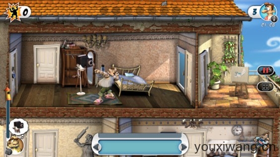 2、千万要小心,不要被邻居给抓住了,不然免不了被一顿胖揍,而且每一关只有三次被抓住的机会哦。