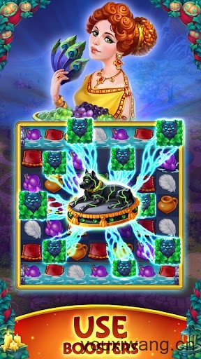 1、在地道的罗马风情场景中享受上百道精彩有趣的三消关卡吧,轻轻移动手机即可畅享消除乐趣。
