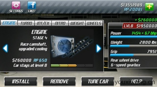 3、游戏中,我们还可以通过改装车辆来提高性能,例如氮气系统、减重等方式,还能用喷漆、贴花个性化赛车哦。
