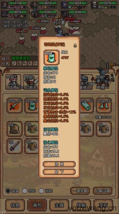 5、点击宝石按钮可以为你的英雄安装不同的宝石,每个宝石都有不同的效果。