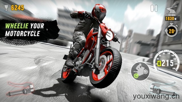 2、游戏内没有燃料或者时间限制,玩家可以自由的驾驶摩托车狂奔,尽情的去感受极致速度带来的快感。