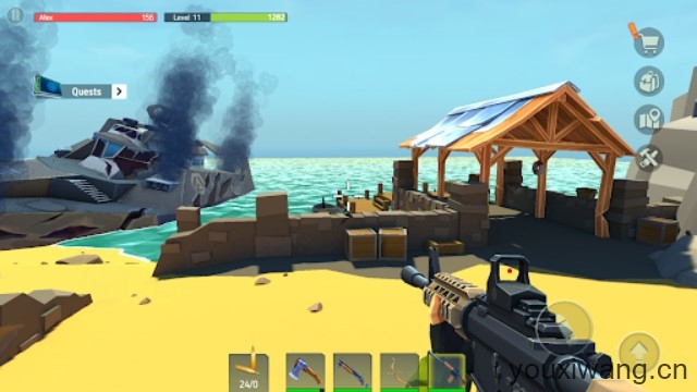 2、丰富的武器、道具可以制作,并且可以在快捷栏中随意配置,让你在战斗中随时都能够进行切换,体验刺激有趣的战斗。