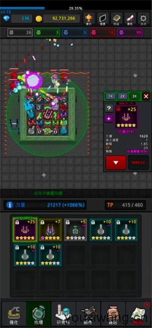 3、点击研究所可以研究不同的符文科技,这些符文可以大幅提升炮塔的威力。
