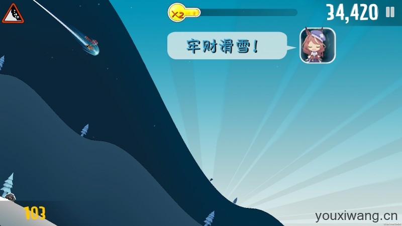 1、操控哈基米逃离雪崩,踩上滑雪板,夺命竞速大战就此拉开序幕!在同伴们的帮助下,不断的加速前进!