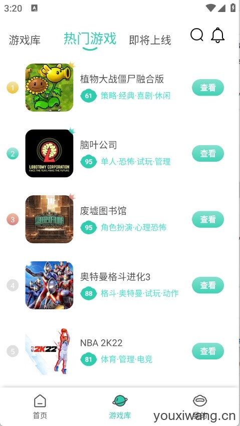 3、游戏库页面将游戏进行了详细的归类,角色扮演、射击以及格斗等类型。