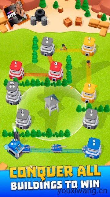 塔楼之战(Tower War),一款益智休闲的卡通风策略闯关手游。在游戏中,你将会成为塔楼指挥官,滑动手指去连接不同的塔楼,派出你的小兵们去消灭敌人,占领敌人的塔楼,赢得最后的胜利!并且随着关卡的进行,我们还可以去解锁更多类型的新型塔楼,例如炮兵哨所、坦克工厂等,让每一次的战斗更加精彩,更加的考验你的策略布局能力!