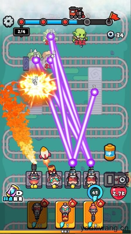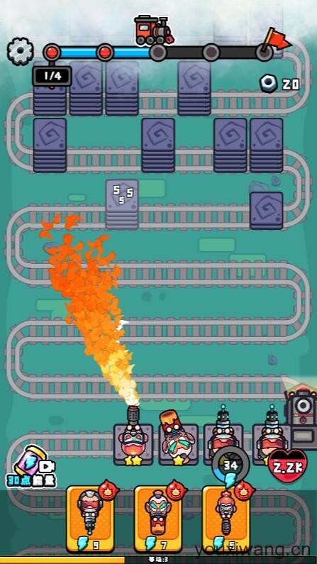 3、正式开始后车厢会自动攻击前方轨道上的敌人,击败敌人可以获得不同数量的金币。