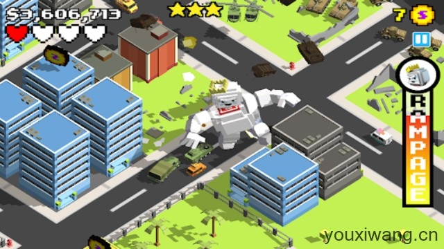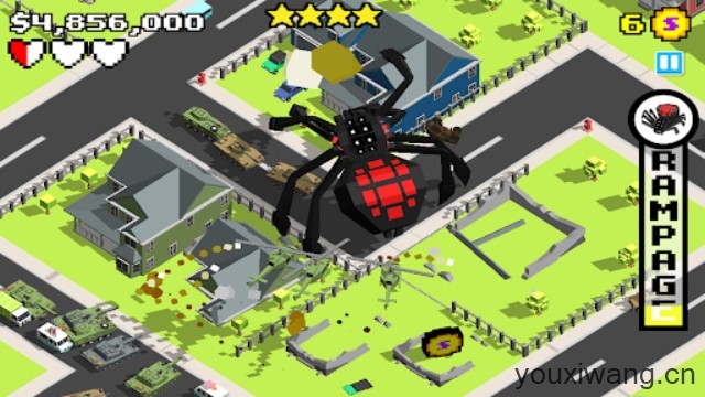 3、随着你破坏的越来越厉害,周围也会出现坦克、直升机来攻击你。