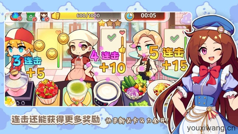 3、关卡挑战:包含上百个关卡和多样的订单,玩家需要策略性地完成挑战,获取每一颗星星。