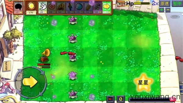 3、消灭敌人后会获得阳光,消耗一定数量阳光可以购买不同的卡牌来使用。