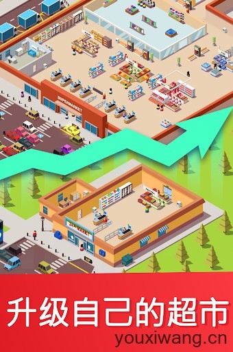 闲置超市大亨,英文名叫做Idle Supermarket Tycoon,在这样一款休闲有趣的模拟经营游戏内,你将会亲手打造出你的商业帝国,将自家的超市变成全球最知名的超级市场!游戏采用了精美细腻的卡通画风设计,人物统一采用了橡皮人构造,看上去也是呆萌可爱,体验起来会非常的轻松愉快。在游戏中,我们将会从零开始经营自己的超市,从基本的水果区、蔬菜区、杂货区等开始建设,一步步的去扩展自己的超市,逐步的提升自己的收益,解锁更多丰富的商品,最终打造成为世界知名的超市!