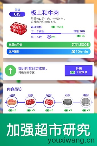 3、随着财富的不断积累,我们可以去解锁更多商品区域,雇佣更多的员工,提高整体的经营效率,赚取更多利润。