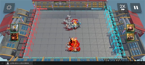4、全部选好后就会开始战斗,场地里的角色会自动进行战斗,其中一支队伍被全部消灭后就可以获得胜利。