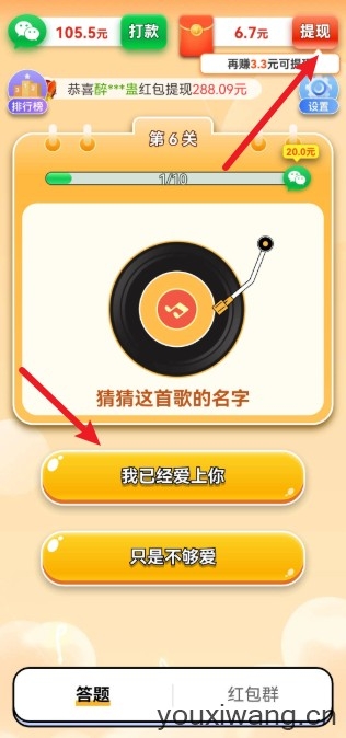 2、每一道关卡中都需要回答若干道题目才能过关,歌曲种类丰富多样,让你拥有畅爽的答题体验。