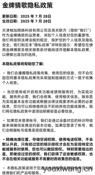 金牌猜歌,一款休闲有趣的歌曲问答闯关类手游。玩法十分的简单,只需玩家安安静静的欣赏系统给出的音乐片段,根据片段中出现的旋律或者歌词来猜歌名,成功猜对即可积一分,达到一定分数即可过关获得奖励了。游戏中准备了丰富的关卡可以去挑战,各式各样好听的歌曲等着你去欣赏,超多奖励等你来领!