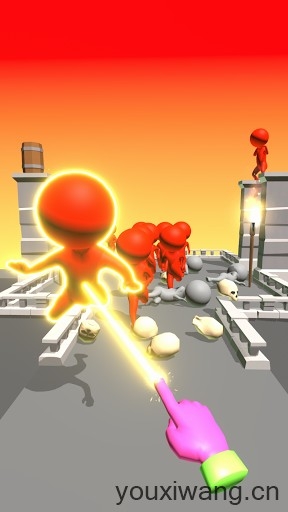 原力指指,一款以超能力为主题的魔性闯关手游。在游戏中,玩家将会控制一个拥有超能力的魔法手套,他可以凭空的操控任何物品,将它们扔向远方。每一关中都有着若干敌人去击败,我们可以直接操控敌人然后击败,也可以控制场景中的各种物品去撞击敌人,从而取得胜利。随着关卡的深入,需要击败的敌人会更多,场景中也会出现更多有意思的道具,利用好这些物品就能帮助你顺利的过关!