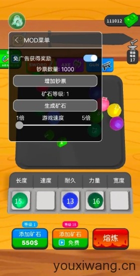 武器铸造大师(Sword Melter),一款令人兴奋的休闲闯关类手游。以铸造武器为主题,通过合成各种高等级的珍稀材料来打造出各种终极武器,并利用这把武器去进行闯关,穿越各种障碍抵达目的地!玩家需要不断的去收集更多强大的材料,熔炼材料来提升武器威力,帮助你去闯过更多的关卡,解锁更多丰富类型的武器,例如斧子、枪等等,带给你更加精彩的闯关体验!