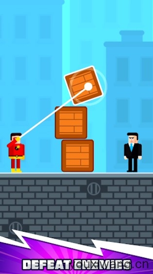 2、开始关卡挑战后,根据英雄的超能力来进行操作,例如这位就可以通过拖动屏幕来划线,从而发射武器。