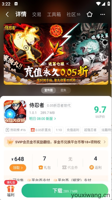 3、各种精品的游戏,海量的福利,低至0.1折扣。