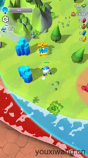 1、成为一名资源收集者,粉碎钻石、水晶和矿物,并与星球上的生物战斗,创造属于你的世界。