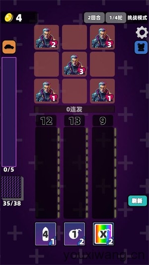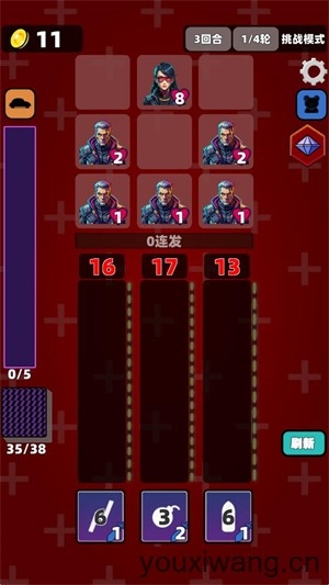 4、进入战斗后玩家需要将数字卡片放入对应的卡槽里,当卡牌数字之和是卡槽的数字就可以攻击当前一列的敌人。