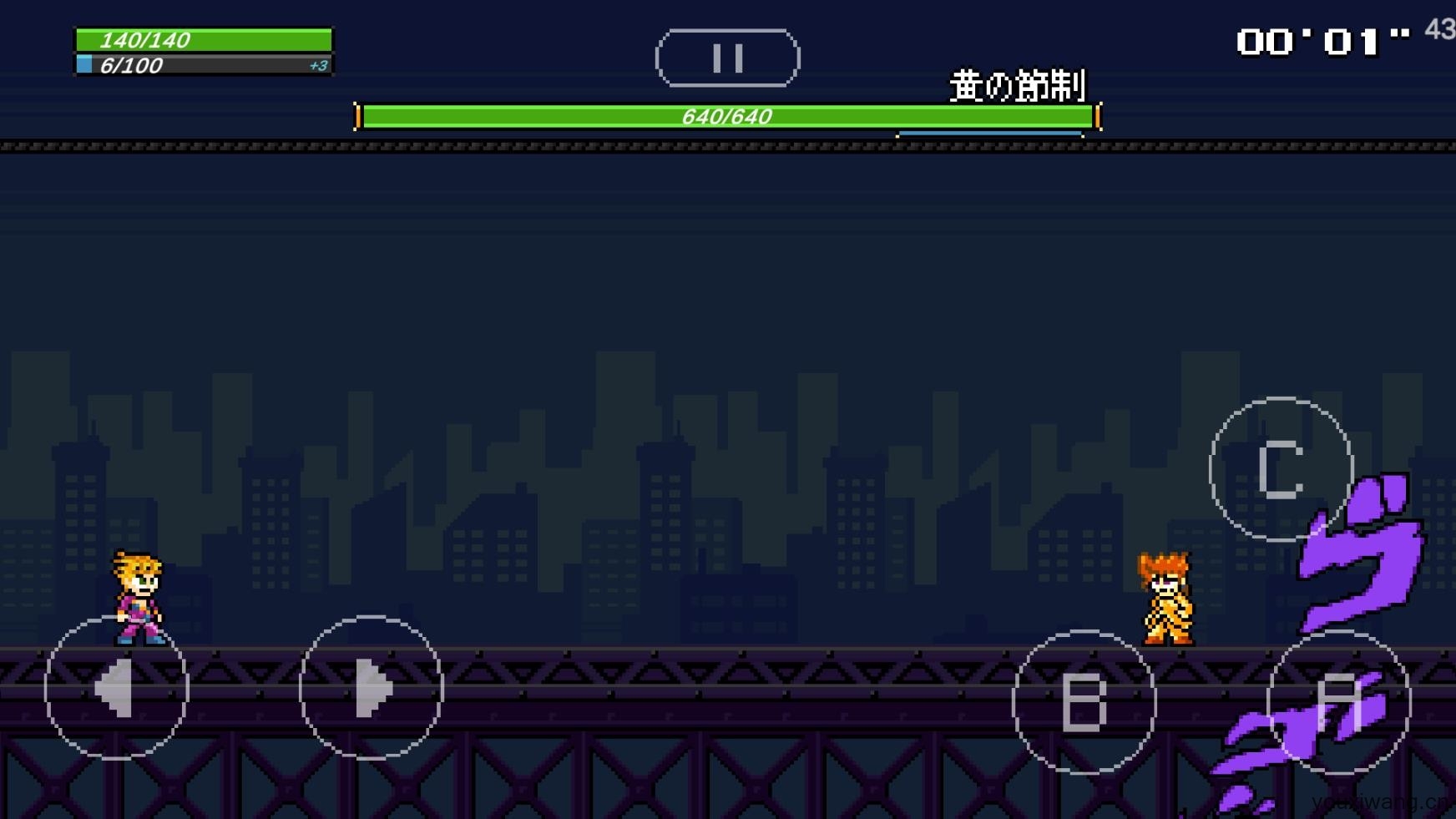5、进入关卡后左边控制角色的左右移动,右边的A键是跳跃、B键是平a、C键是大招。