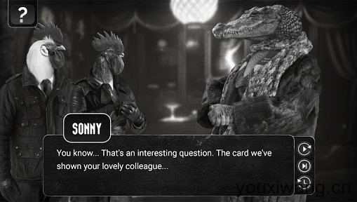 公鸡神探(Chicken Police),一款经典黑白电影风格的侦探解谜类手游,是根据Steam同名游戏移植而来。玩家将会作为警察投身到一个又一个离奇的案件当中,探索一个个令人激动人心的精彩故事,与各种任务进行交谈,从中审问出一切关于案件的线索,找到大量线索、信息和证据,帮助你去侦破每一起案件!游戏拥有着专业配音和超过8个小时的口语对话,搭配上黑白的经典画风,让你能够体验到黑白电影版的体验!