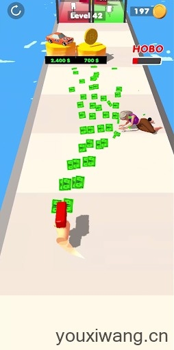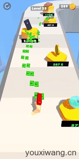最富枪王(Moneygun Run),一款魔性有趣的休闲跑酷类手游。玩家们需要控制一把钞票枪前行,过程中可以拾取道具增强自己的火力,途中还会遇到各种有价值的物品,你需要用钞票枪将它们全部买下,这样回到终点后就可以将物品摆放上货架,为你带来源源不断的金币!收集了金币之后,可以用来升级自己的钞票枪,让你可以进入更多场景畅快的“进货”,同时还有着各式各样的皮肤可以解锁呢!