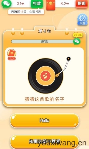 2、每一道关卡中都准备了丰富的歌曲可以去挑战,答对了一定数目的题目即可过关,获得系统准备的奖励。