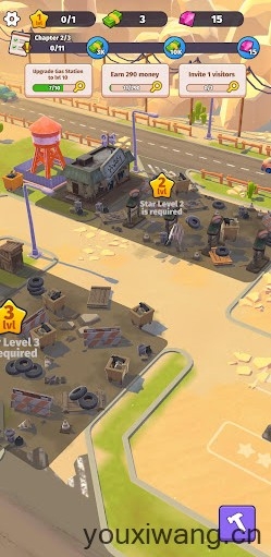 1、进入游戏后,首先来解锁我们的第一座加油站。