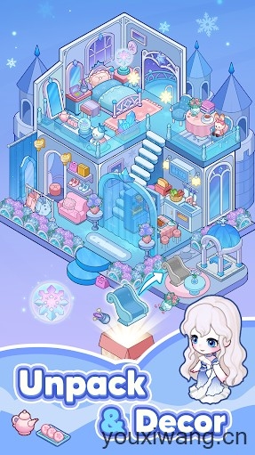 2、打开装满家具、装饰品和可爱物品的神秘储物盒,然后将每件物品拖放到梦幻房间家居装饰游戏中的完美位置。