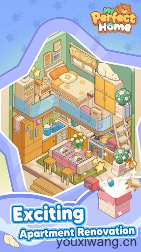 我的完美家园,英文全名叫做My Perfect Home:Design Game,是一款画风温馨治愈的房屋设计类手游,采用了Q萌可爱的卡通风格设计,为你呈现出一个个梦幻般的房间,在这里享受舒适无比的家居装饰乐趣!你将会见识到众多梦幻的房间装饰,通过一个神奇的魔盒来获得这些装饰品,将空空荡荡的房间瞬间变成一个令人惊艳的温馨家园!