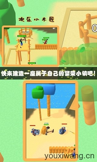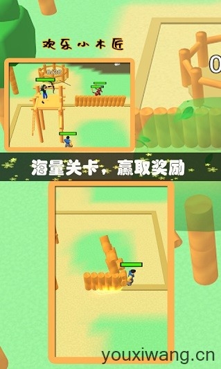 欢乐小木匠(Lumbercraft),由“毒厂”VOODOO所推出的一款休闲经营类小游戏,融合了建造、生存、塔防战斗等多种玩法,游玩的体验将会非常的丰富!游戏很好的延续了该厂商的一贯风格,用魔性搞怪的画风和简单休闲的操作带给你精彩有趣的体验,让你能够情不自禁的沉浸在其中,无法自拔!