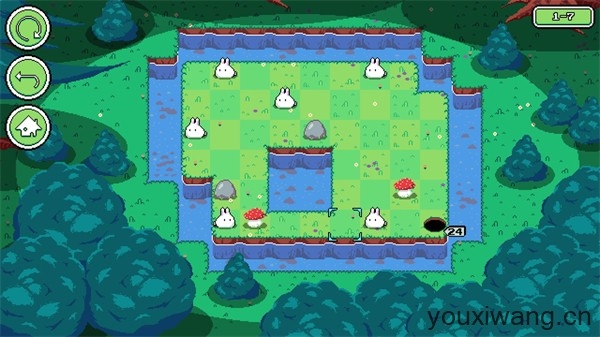 4、当关卡里的所有兔子全部进入洞穴后就会通关,每关可以移动的步数会在洞穴旁边显示。
