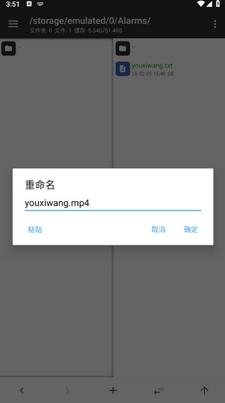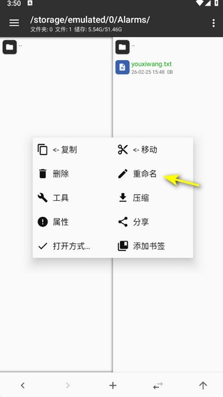 2.长按“youxiwang.txt”,直至出现新弹窗。