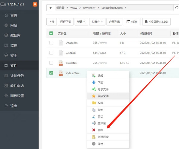 删除系统默认生成的首页文件,避免上传程序后依然显示默认界面。