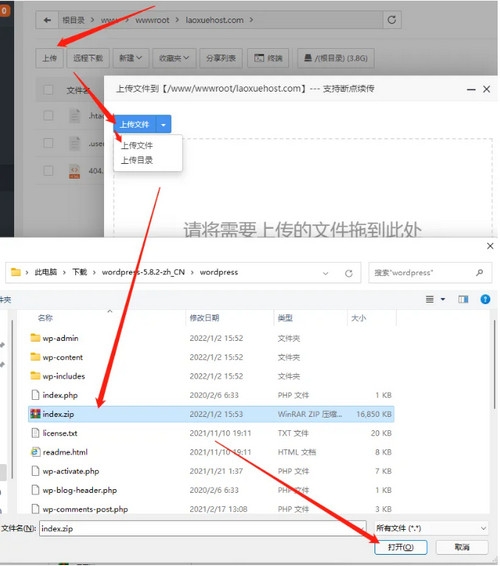 点击根目录下的目录路径会跳转到网站根目录从该界面上传网站程序。