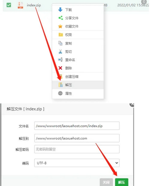 本地解压下载的官网程序包,重新只压缩网站程序文件,注意打包压缩格式为ZIP格式。ps部分程序程序包里面还有升级目录以及一些中文目录中文文件说明,新装站点是不需要上传这些文件的所以重新打包为了方便操作。